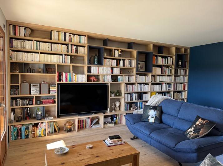 À Béziers 34500, optimisez votre salon avec une bibliothèque sur mesure avec compartiment pour la TV conçue par Quadro Narbonne. Chaque agencement est réalisé sur plan, selon vos besoins fonctionnels et esthétiques, dans le respect des volumes et des contraintes techniques.