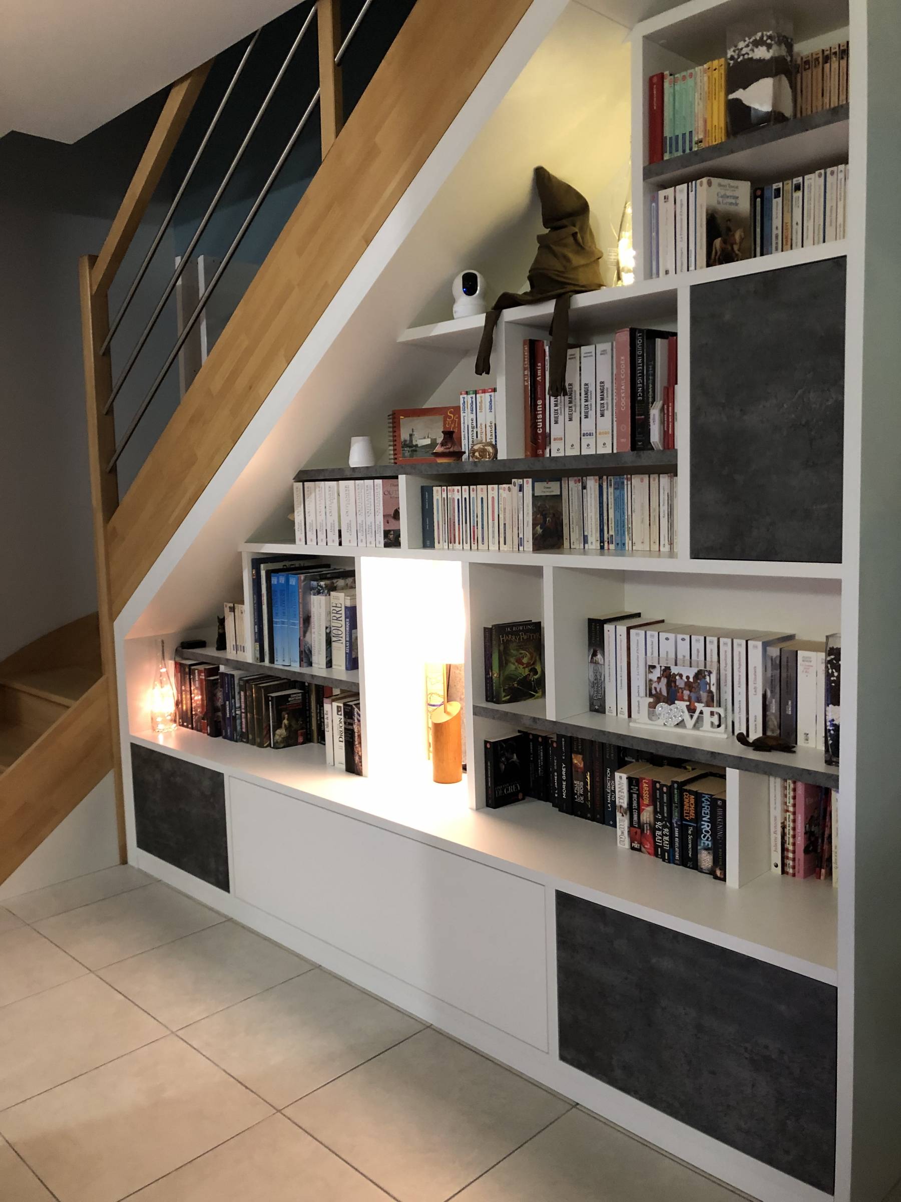 ✅ Qu'un nouvel espace pour embellir leur pièce a été crée. D'une zone vide sous l'escalier, nous avons réussi à instaurer un nouveau lieu de vie pour toute la famille et non plus un lieu de "passage".