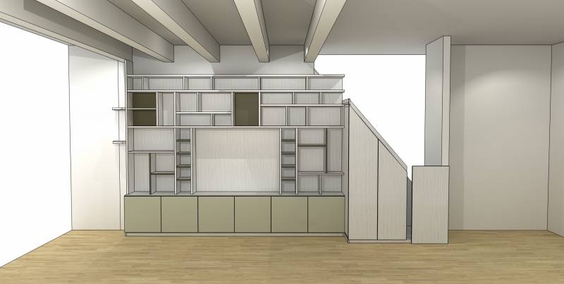 Création d'une bibliothèque avec partie sous escalier sur mesure à Gruissan proche Perpignan
