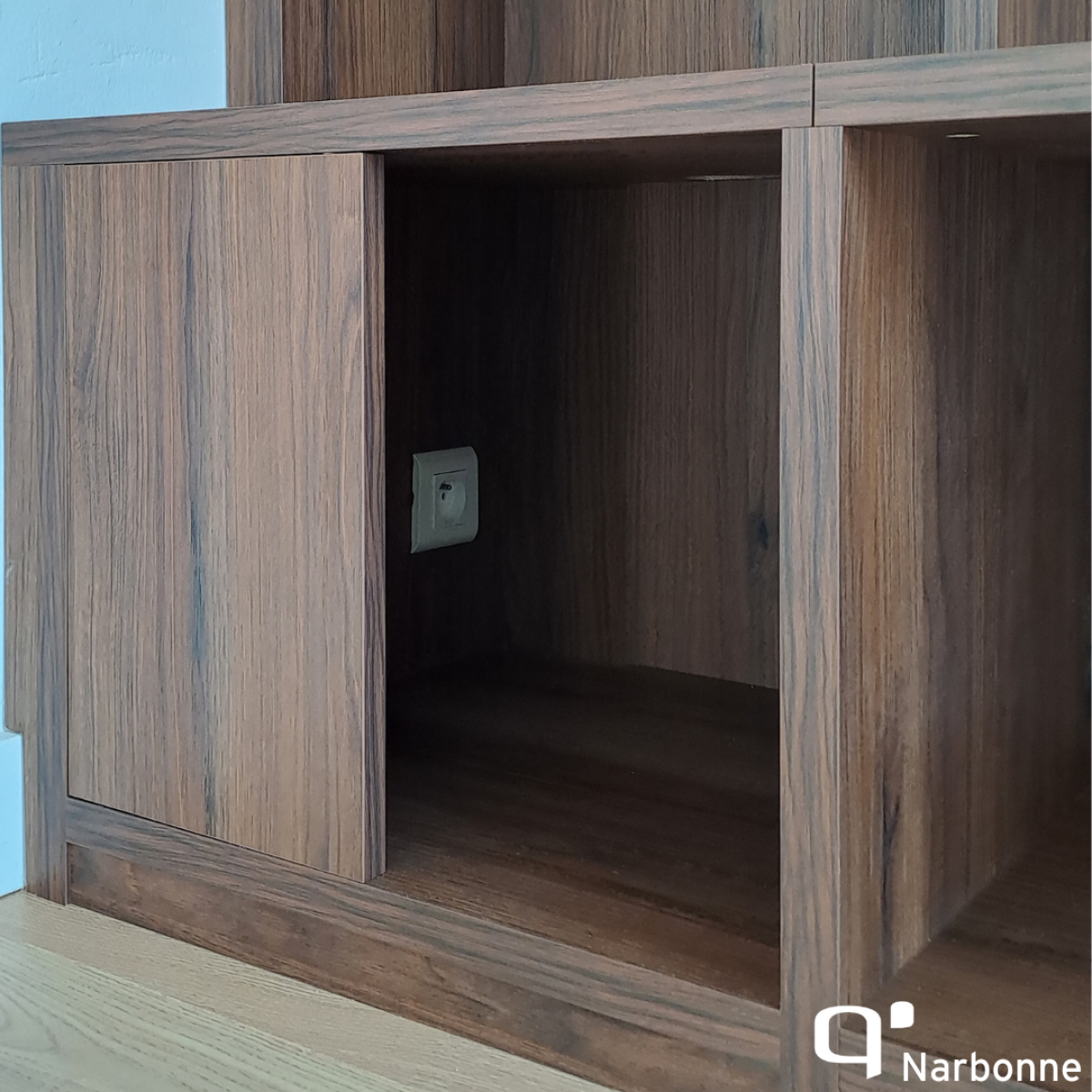 appareils électroniques quant à eux peuvent s’intégrer dans des niches ou des étagères ajustables et s'adapter aux différentes tailles d'équipements afin permettre une disposition personnalisée selon les besoins de chacun.